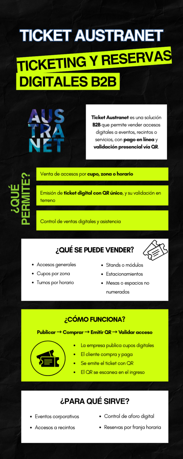 Ticket Austranet es una solución B2B para la venta y gestión de accesos digitales a eventos, recintos y servicios.